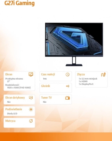 Monitor Xiaomi G27i dizajniran je za zahtjevne igrače koji cijene izvrsnu kvalitetu slike. Opremljen je 27-inčnim IPS zaslonom koji nudi detaljan prikaz u Full HD rezoluciji 1920 × 1080 piksela. S brzinom osvježavanja 165 Hz možete uživati u glatkom gaming doživljaju bez trganja slike.
