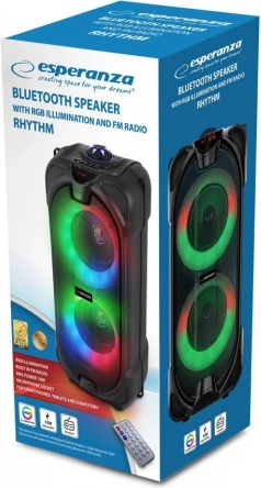 Bežični Bluetooth zvučnik Esperanza Rythm s RGB LED osvjetljenjem i FM radijom za visokokvalitetno slušanje.