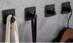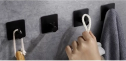 Moderne samoljepljive kuke RUHHY kombiniraju čvrsti nehrđajući čelik i izdržljivo prašno lakiranje u elegantnoj mat crnoj izvedbi. Zahvaljujući snažnoj montažnoj traci pouzdano drže i u okruženju s višom vlagom te mogu podnijeti do 3 kg po jednoj kuki. Praktičan završetak u obliku kuke sprječava klizanje čak i teških i mokrih ručnika.