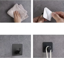 Ugradnja je brza i čista – bez bušenja i bez alata. Za maksimalno prianjanje dovoljno je očistiti površinu (npr. alkoholom), zagrijati ljepljivu podlogu sušilom za kosu i čvrsto pritisnuti. Po potrebi kuku je moguće skinuti bez oštećenja podloge i bez ostavljanja tragova.