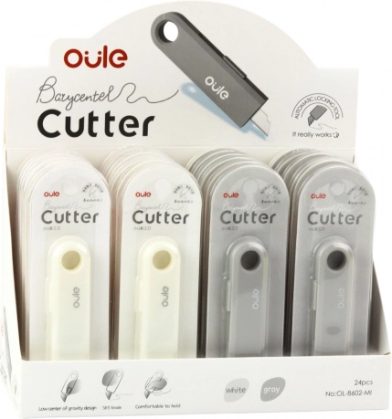 Izdržljiva čelična oštrica izvlači se ručnim klizačem, dok lagano plastično tijelo sa zaobljenim rubovima udobno leži u ruci. Oko na tijelu omogućuje vješanje na vrpcu, kuku ili pričvršćivanje na privjesak za ključeve. Dostupno u neutralnim bojama (mix); boja se odabire nasumično.