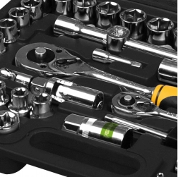 Ovaj 108-dijelni set kombinira najčešće korištene nasadne glave, bitove i pribor, pa lako savladavate montažne i servisne poslove na automobilu, biciklu ili u kućanstvu. Pregledan raspored u čvrstom koferu osigurava brzu orijentaciju i sigurno odlaganje.