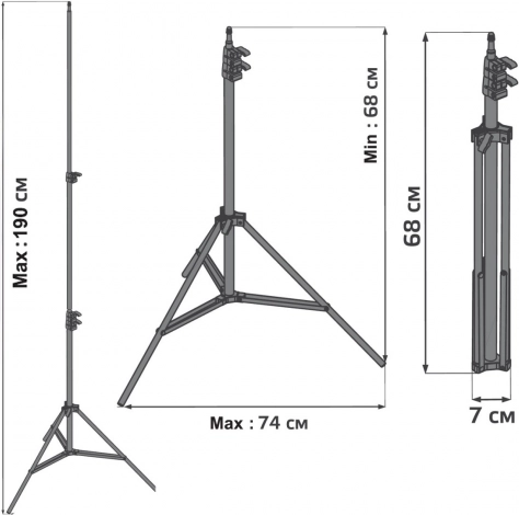 Visokokvalitetan profesionalni stalak namijenjen za montažu kružnih lampi. Kompatibilan je s 12" lampama Maclean Energy MCE612 i MCE612B. Maksimalna visina stalka je 190 cm, što omogućuje fotografiranje i stojeći. Zahvaljujući maloj težini i mogućnosti brzog sklapanja, stalak je lako prenosiv.