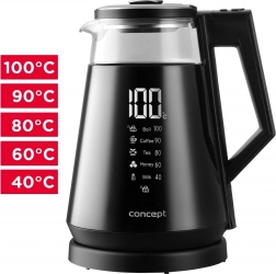 Kuhalo omogućuje regulaciju temperature u četiri koraka (40°C, 60°C, 80°C, 100°C). Zahvaljujući čitljivom digitalnom zaslonu imat ćete savršen pregled nad odabranim programom i trenutačnom temperaturom vode. Funkcija KEEP WARM održava zadanu temperaturu do 4 sata.