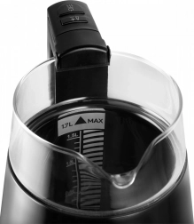 Kuhalo je jednostavno za upotrebu i održavanje zahvaljujući izmjenjivom poklopcu s integriranim filtrom protiv stvaranja kamenca i velikom otvoru za punjenje vodom. Glatko dno sa skrivenom grijaćom spiralom sprječava stvaranje kamenca, a veliki pokazivač razine vode omogućuje lako praćenje količine vode u kuhalu. Potpuno rotirajuća baza nudi prostor za pohranu viška kabela.