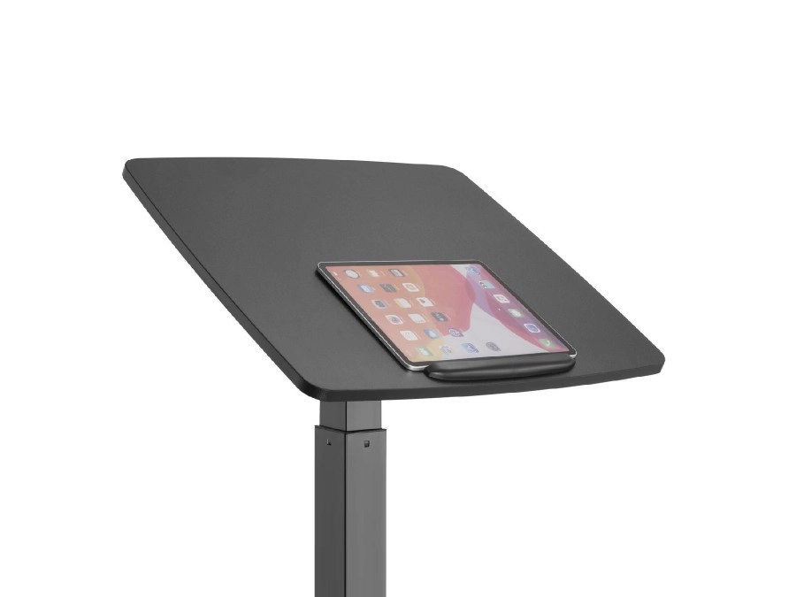Radna ploha s mogućnošću nagiba pruža udoban kut za pisanje, čitanje, skiciranje i rad na tabletu. Robustan čelični okvir i kvalitetni kotačići sa zaključavanjem jamče stabilnost i sigurnu uporabu pri premještanju između prostorija.
