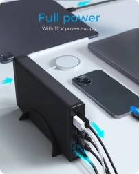 Povežite periferije preko 1× USB‑C i 2× USB‑A izravno na kućištu. Štedite portove prijenosnika i imate sve pri ruci.