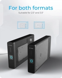 Precizno izrađeno aluminijsko kućište osigurava odvođenje topline i dug vijek trajanja. Uz Plug & Play i HotSwap zamjena diskova je trenutačna, a s priloženim stalkom štedite prostor na stolu pri vertikalnom postavljanju.