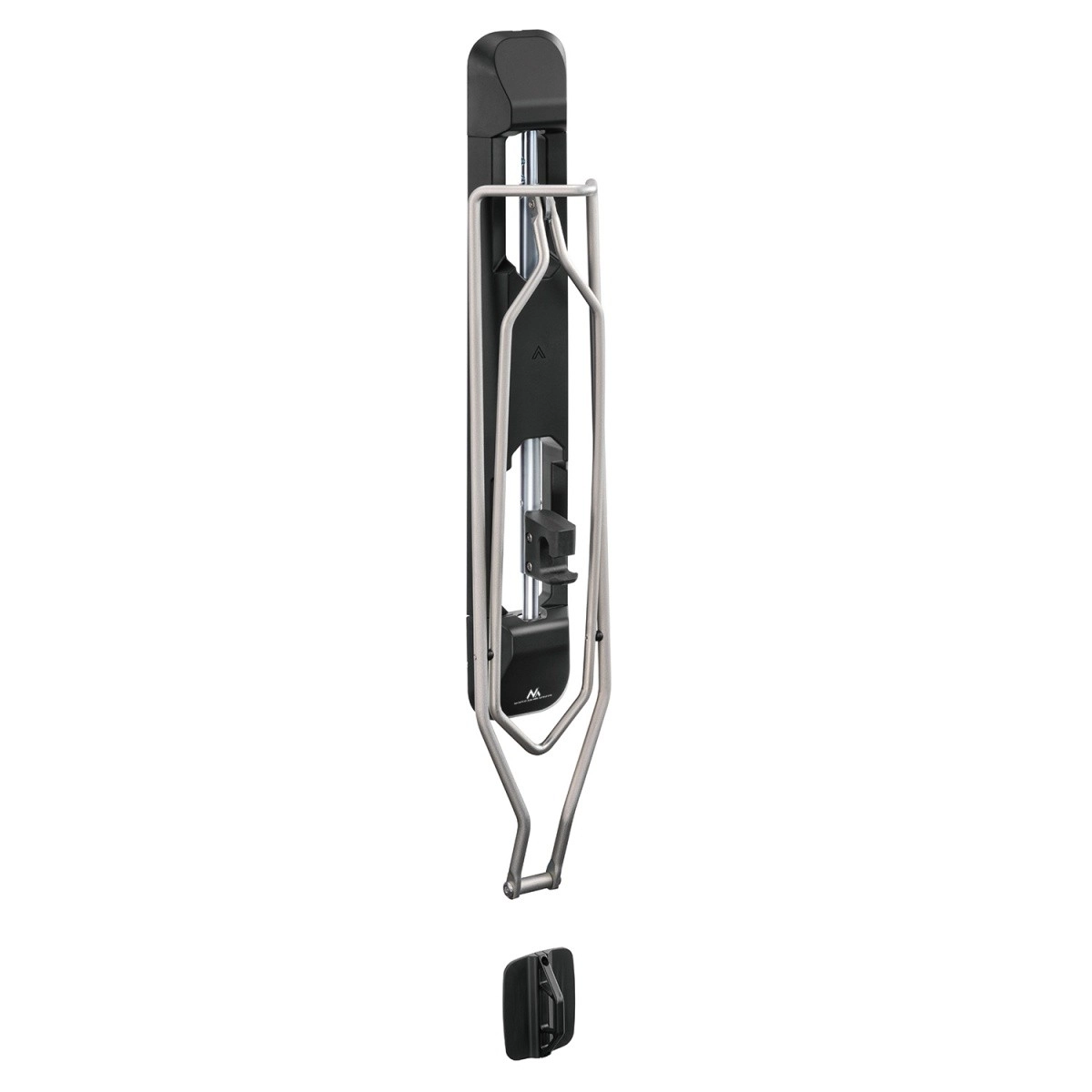 Nosač osigurava stabilnost i sigurnost, drži bicikl u vertikalnom položaju. Zahvaljujući podesivih pet razina visine prilagođava se različitim veličinama bicikala. Nakon skidanja bicikla nosač možete sklopiti i tako uštedjeti još više prostora.