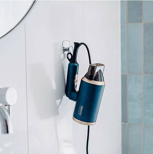 Sušilo je opremljeno sustavom ionizacije, zahvaljujući kojem je kosa manje sklona elektriziranju, što joj daje glatku i sjajnu privlačnost. Praktičan držač olakšava vješanje i skladištenje, dok sklopiva drška čini sušilo kompaktno i idealno za putovanje.