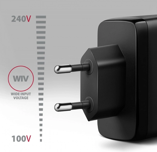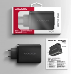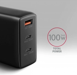 Snažan putni mrežni punjač AXAGON GaN 100 W istovremeno puni do tri uređaja. Nudi 2× USB‑C i 1× USB‑A, podršku za PD 3.0, QC 4+, PPS, Samsung SFC 2.0 45 W i Apple PD 20/27 W. Zahvaljujući tehnologiji GaN kompaktan je, učinkovit i siguran za prijenosna računala, telefone i tablete.