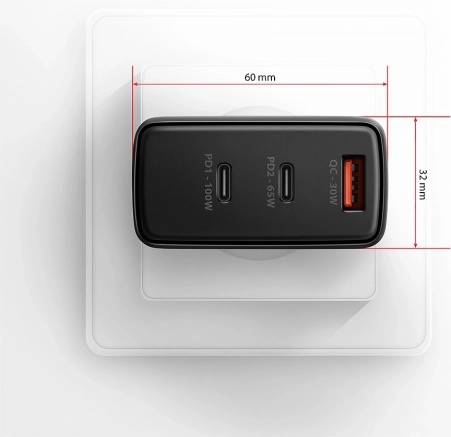 - 3 porta: 2× USB‑C (PD do 100 W) + 1× USB‑A (QC do 30 W)