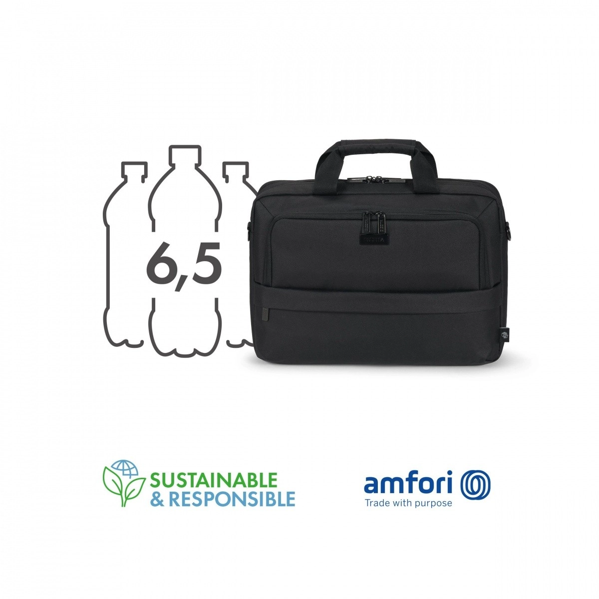 Lagana i izdržljiva torba za prijenosno računalo iz DICOTA ECO linije štiti vaše 13–14,1" prijenosno računalo i istodobno čuva planet. Izrađena od recikliranih PET boca, nudi vrlo izdržljivu HDF podstavu, vodootporan materijal, pametne organizatore za pribor te sigurnosne značajke poput RFID džepa i skrivenog pretinca za GPS lokator.