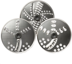 Set od tri obostrana diska od nehrđajućeg čelika nudi različite granulacije ribanja i rezanja. Lako obrađuje povrće, sir i orašaste plodove te osigurava ujednačene rezultate.