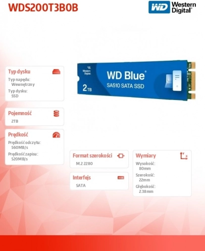 Uživajte u brzini i učinkovitosti. SSD WD Blue SA510 pruža brzinu čitanja do 560 MB/s, što ga čini idealnim izborom za veću produktivnost.