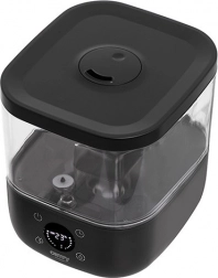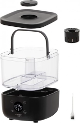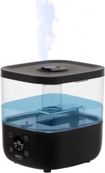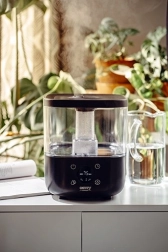 Intuitivni LED zaslon s dodirnim tipkama olakšava postavljanje željene razine vlažnosti i mjerača vremena. Praktično punjenje odozgo štedi vrijeme pri nadolijevanju, a noćni način rada osigurava neometan san zahvaljujući vrlo tihom radu. Sigurnost jamči senzor nedostatka vode, koji automatski isključuje uređaj.