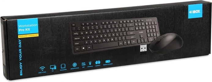Bežični set iBox Workstation Pro idealno je rješenje za svakodnevni rad u uredu ili kod kuće. Tipkovnica nudi bogate funkcije, uključujući niskoprofilne tipke koje omogućuju tiho i udobno tipkanje. Pristup multimedijskim funkcijama moguć je jednostavnim pritiskom tipke Fn. Ergonomski miš sa simetričnim dizajnom prikladan je i za ljevake i za dešnjake te osigurava udobnost tijekom dulje upotrebe. U pakiranju se nalaze i baterije za trenutačnu upotrebu.
