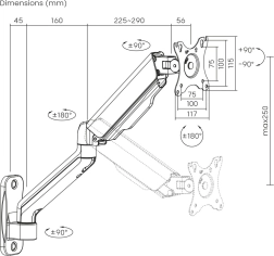 Montaža na zid oslobađa vrijedan prostor na stolu i pomaže u organizaciji manjih ureda, recepcija ili info pultova. Robusna metalna izvedba osigurava stabilnost, dok glatki mehanizam olakšava često podešavanje monitora bez napora.