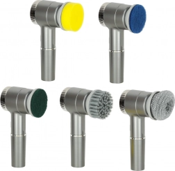 Set od pet nastavaka pokriva sve scenarije čišćenja: spužvica za poliranje, 2× tekstilni pad za osjetljive površine, najlonska četka za fuge i tvrdokorne nečistoće te strugač za naslage. Brzostezni mehanizam osigurava munjevitu zamjenu glava bez napora.
