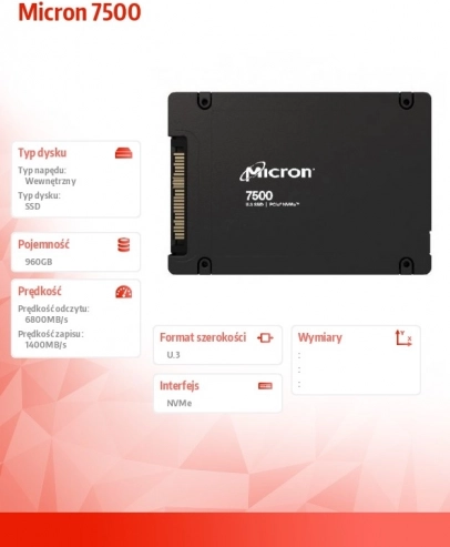 SSD disk MICRON 7500 PRO 960 GB NVMe U.3 15 mm