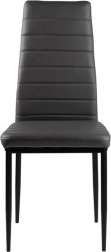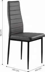 Set od četiri stolice savršeno nadopunjuje vašu blagovaonicu ili dnevni boravak zahvaljujući modernom dizajnu s ergonomskim elementima. Sivo presvlake od eko-kože s vodoravnim prošivima ne samo da izgledaju odlično, već pružaju i maksimalnu udobnost pri sjedenju. Crne metalne noge osiguravaju stabilnost i izdržljivost.