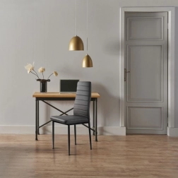 Kombinacija sive eko-kože i crnih metalnih nogu stolici daje elegantan i moderan izgled koji se uklapa u svaki interijer.