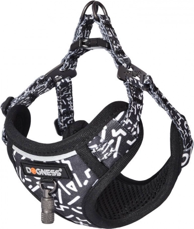 Stilizan crno-bijeli set Dogness spaja povodac duljine 1,5 m i udobnu ormu za svakodnevne šetnje. Zahvaljujući kombinaciji izdržljivog najlona, prozračne mrežice i čvrstih metalnih elemenata od cinkove slitine nudi maksimalnu udobnost i sigurnost za vas i vašeg psa.