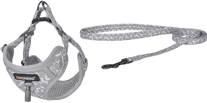 Set za šetnju Dogness spaja stil, udobnost i sigurnost u jednom praktičnom paketu. Laka, prozračna orma lako se stavlja i zahvaljujući podesivim remenima savršeno pristaje. Povodnik duljine 1,5 m pruža odličnu kontrolu nad psom bez ograničavanja kretanja.