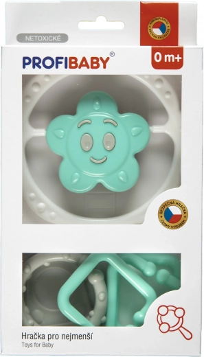 Ovaj set zvečki idealan je za svakodnevnu igru kod kuće i na putu. Lanac lako pričvrstite na kolica, autosjedalicu ili krevetić, a zasebna zvečka u obliku zvijezde ili cvijeta odlično pristaje u malu dječju ručicu. Zvučni i vizualni podražaji razvijaju djetetova osjetila i potiču koordinaciju oko–ruka.