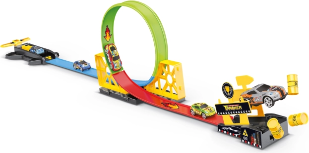 Uživajte u sjajnoj zabavi s autostazom s petljom i izbacivačem automobila. Ova staza duljine 125 cm idealna je za ljubitelje brzih vožnji i adrenalina.