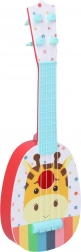 Ova dječja gitara s motivom afričkih životinja idealna je za male početnike. Ima četiri umjetne žice i duljinu od 37 cm, što je čini savršenim izborom za lako držanje i sviranje.