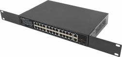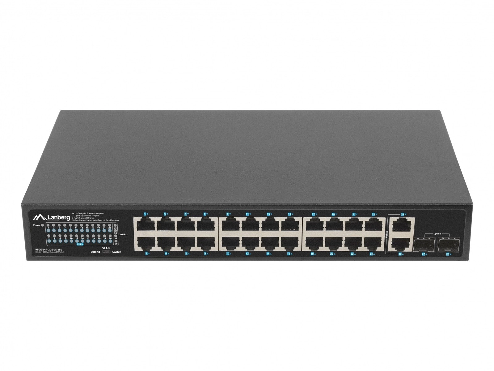 LANBERG RS serija donosi robusno rješenje za napajanje i podatkovnu povezivost u jednoj jedinici. Switch nudi 24 PoE+ 802.3af/at porta s ukupnom snagom do 250 W, što pokriva većinu IP kamera, pristupnih točaka i VoIP telefona. Uz to dolaze 2 gigabitna uplinka i 2 gigabitna SFP utora za fleksibilno backbone povezivanje.