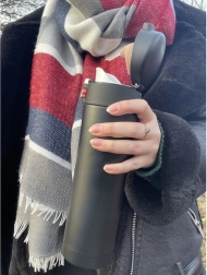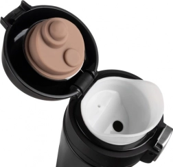 Jednostavno otvaranje jednim gumbom omogućuje brz pristup napitku, dok higijenski i udoban nastavak za piće čini ispijanje u pokretu ugodnim. Termo šalica izrađena je od sigurnih materijala (nehrđajući čelik i PP), jednostavna je za čišćenje te zahvaljujući univerzalnim dimenzijama odgovara većini auto držača.