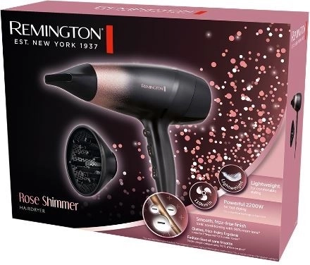 Otkrijte spoj snage i elegancije. REMINGTON Rose Shimmer s keramičkom mrežicom ravnomjerno raspoređuje toplinu i oslobađa milijune iona koji smanjuju statički elektricitet te ostavljaju kosu vidljivo glađom i sjajnijom. Snažan protok zraka osigurava brzo sušenje bez kompromisa.