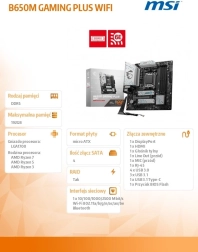 Gaming matična ploča MSI B650M Gaming Plus WiFi dizajnirana je za procesore AMD Ryzen iz serije 8000/7000, zahvaljujući čemu pruža impresivne performanse za stolna računala. Podržava DDR5 memoriju s frekvencijom do 7200+(OC) MHz, što osigurava brzo i učinkovito rukovanje sustavima koji zahtijevaju veliki kapacitet memorije. Zahvaljujući poboljšanoj konstrukciji naponske jedinice 10+2+1 Duet Rail i dvostrukim 8-pinskim konektorima spremna je za zahtjevne zadatke.