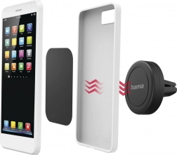 Univerzalni Hama držač za ventilaciju dizajniran je za maksimalnu udobnost tijekom vožnje. Jak magnet sigurno fiksira pametni telefon, dok 360° okretni zglob omogućuje savršen kut za navigaciju, pozive i glazbu. Kompaktne dimenzije znače da zauzima minimalno prostora i ne smeta u interijeru vozila.