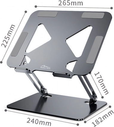 Stalak za prijenosna računala marke Media-Tech pruža vam čvrstu i stabilnu konstrukciju izrađenu od visokokvalitetnog čelika i aluminija. Zahvaljujući sklopivom dizajnu, lako se prenosi i skladišti, što je idealno i za ured i za dom.