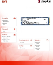 Kingston NV3 je moderan NVMe SSD osmišljen za maksimalnu odzivnost sustava, brzo pokretanje i munjevito učitavanje aplikacija i igara. Zahvaljujući kontroleru NVMe Gen 4x4 koristi propusnost PCIe 4.0 i pritom zadržava niže zagrijavanje i potrošnju, što pogoduje stabilnosti i dugovječnosti komponenti.