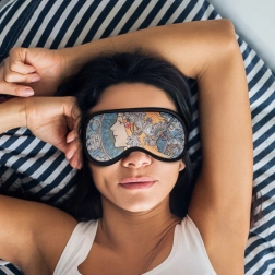 Uživajte u kvalitetnom snu i opuštanju s elegantnom maskom za spavanje inspiriranom djelom Alfonsa Muche, motivom Zodijak (Zodijak). Ugodan materijal s dodatkom spandeksa nježno se prilagođava, svilenkast je na dodir i dobro pristaje pri odmoru, meditaciji i putovanju.