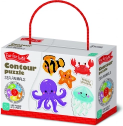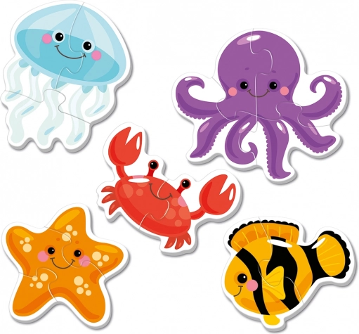 Otkrijte svijet mora s obrisnim puzzlama namijenjenima najmlađima. Svaka od 5 slika sastoji se od samo 2–4 dijela, pa djeca brzo doživljavaju uspjeh i radost slaganja. Jarke boje i pregledni oblici potiču koncentraciju i razvoj vještina.