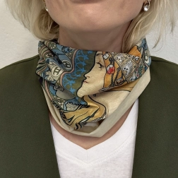 Otkrijte elegantnu bandanu nadahnutu ikoničkom secesijskom estetikom Alfonsea Muche. Motiv Zodijaka vašem će outfitu dati umjetnički i bezvremenski karakter, dok će lagani poliester osigurati ugodno nošenje i jednostavno održavanje.