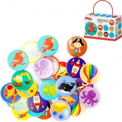Set za igru sadrži 28 kartica u obliku kruga, koje su posebno dizajnirane za dječake. Pexeso igra nije samo zabavna, već i edukativna, jer pomaže razvijanju pamćenja i pažnje vaše djece.