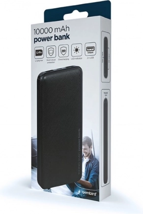 Ova crna power banka kapaciteta 10000 mAh idealno je rješenje za punjenje pametnih telefona i tableta kada ste na putu. Opremljena je s dva USB porta, što omogućuje istovremeno punjenje više uređaja. Konstrukcija je kompaktna i lagana, što osigurava jednostavnu prenosivost.