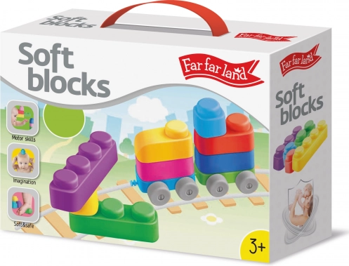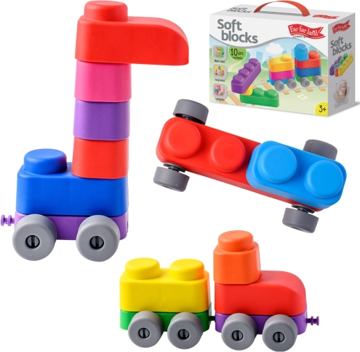 Far Far Land mekane građevne kocke za malu djecu nude sigurnu i kreativnu zabavu s deset dijelova i osam kotačića. Ovaj set razvija kreativnost, motoričke vještine i koordinaciju ruka-oko. Izrađeno od mekog materijala pogodnog kao grickalica za zubiće.