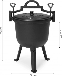 Ovaj robusni i izdržljivi ljevaonički kotlić kapaciteta 8 litara je izvrsna opcija za pripremu aromatičnih jela vani ili kod kuće. Pruža izniman okus i kulinarsko iskustvo te dodaje jedinstvenu atmosferu vanjskim događajima. Lijevani materijali ravnomjerno provode toplinu, zbog čega su idealni za sporo kuhanje, pirjanje i pečenje.