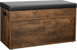 Drvena klupa za cipele u loft stilu nudi moderan izgled i praktičnost u jednom. Izrađena od iverice, ima mekano, crno sjedalo na vrhu koje se lako uklanja zahvaljujući čičak traci. Ispod njega nalazi se dovoljno prostora za spremanje papuča ili sitnih komada odjeće kao što su kape, šalovi ili rukavice.
