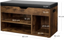 S ovom klupom dobivate ne samo mjesto za pohranu obuće na tri prostrane police, već i udobno sjedalo za lako obuvanje. Loft stil dodaje eleganciju bilo kojem interijeru i osigurava da je pogodna za bilo koji prostor.
