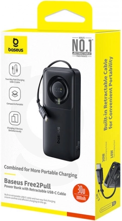Power banka Baseus Free2Pull nudi kapacitet od 10 000 mAh, što omogućuje višekratno punjenje većine pametnih telefona i drugih mobilnih uređaja. To osigurava potrebnu energiju u svim uvjetima. Maksimalna snaga punjenja od 30 W jamči da će se vaši uređaji puniti brzo i učinkovito, što je ključno kada je vrijeme važno.