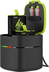 Telesin punjač podržava i originalne GoPro baterije i baterije trećih strana. Sadrži dva utora za memorijske kartice.
