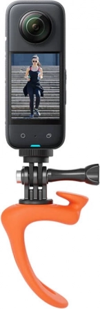 Fleksibilan Telesin silikonski držač za sportske kamere. Montaža na klik, rotacija 360°/180°. Kompatibilan s GoPro, DJI, Insta360. Narančasta.